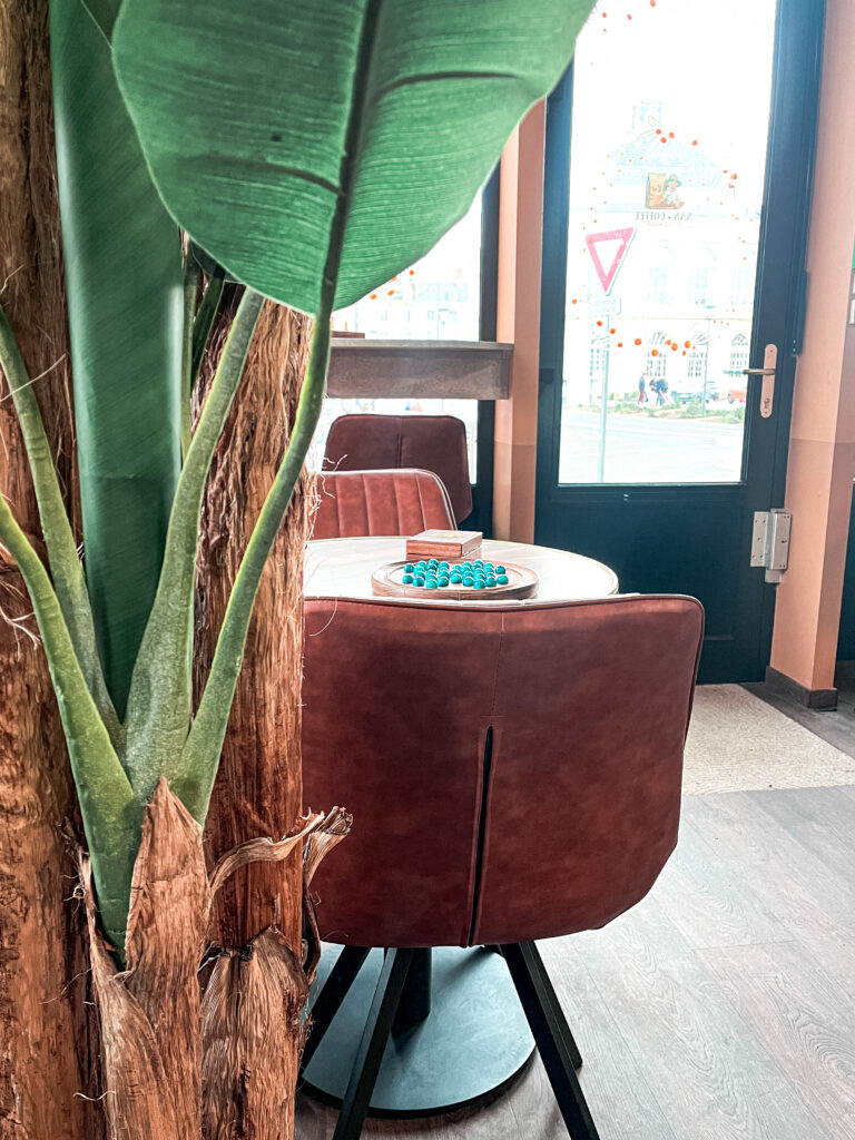 - San-Coffee, café shop : Une découverte récente (2026) dans laquelle on retournera, c’est certain ! Ce temple du café est, à l’instar d’une grande chaine de café mondialement connue, une adresse d’exception. Le propriétaire est un spécialiste des cafés et après avoir travaillé dans de bonnes adresses, il a ouvert son Coffee shop. Des cafés surtout, mais aussi, des boissons chaudes, matchas, latte, thés, … et quelques pâtisseries. J’ai beaucoup aimé l’ambiance de ce lieu idéal pour se reposer, jouer (il y a des jeux en bois sur toutes les tables) ou travailler.